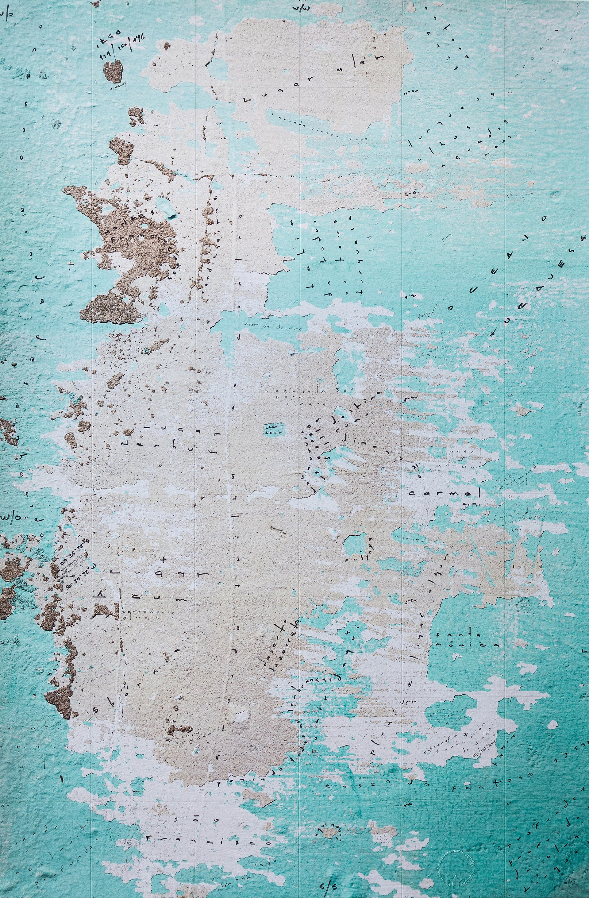 Tomaram forma, então, trabalhos inéditos que percorrem caminhos distintos. Cadeias de montanhas que testam o limite da visibilidade, mapas de mundos imaginários e poéticos, colmeias que são um mundo em si, fotografias que sobrepõem fotografias e testam os limites e capacidades do fazer fotográfico, uma estação de escuta que narra uma história a partir de fragmentos de diversos poetas, cadernos ilegíveis que condensam camadas de um rotina inacessível e joias que remetem a elementos cotidianos que são parte das nossas pequenas meditações pessoais.